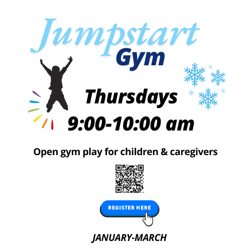 Come play in our full-sized gym! Thursday mornings from 9-10am. Equipment provided (ride on toys, climbing/mat area, etc.). Adult supervision required.